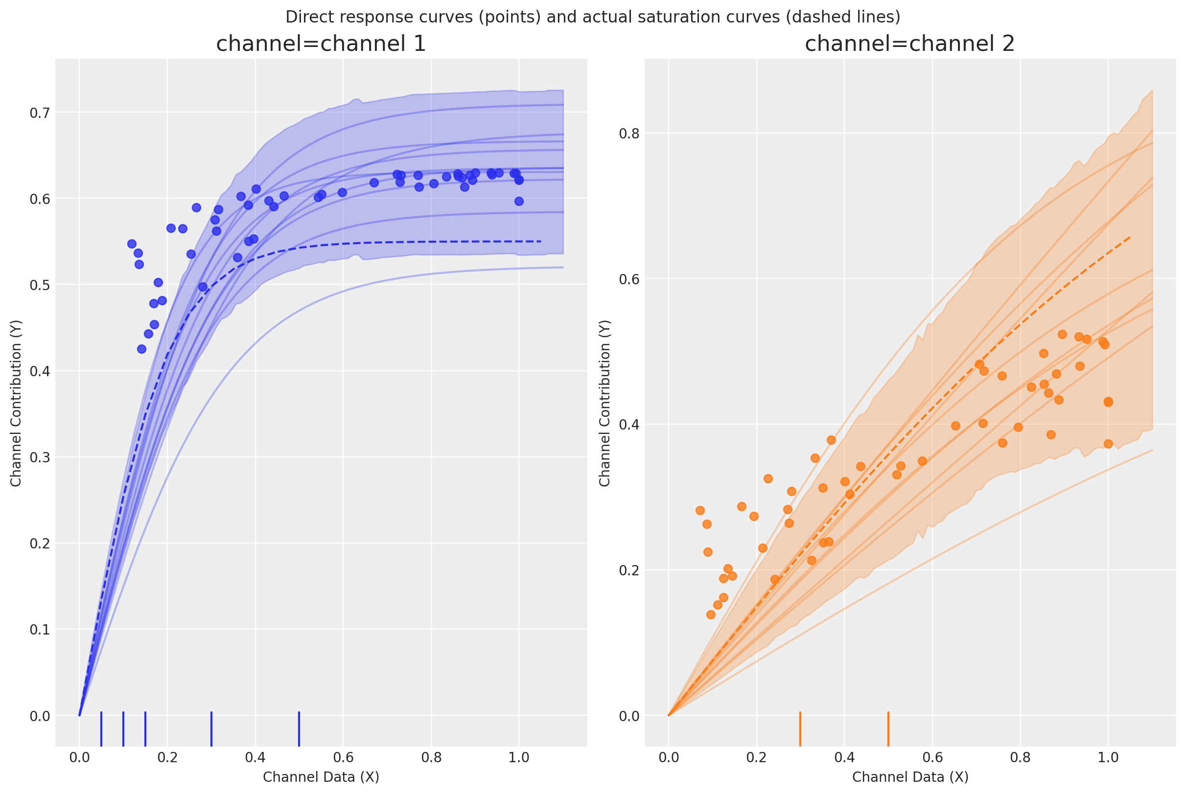 We can also witness that while the actual saturation curves are different (because we specified the true parameters for each channel), the MMM is unable to distinguish between the two channels.