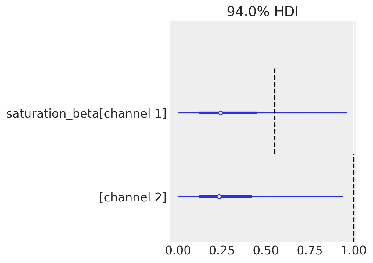 ax = az.plot_forest(idata_without, var_names=["saturation_beta"], combined=True)[0]
